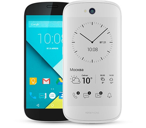 Цена YotaPhone 2 в белом корпусе составляет 43 000 рублей. Это на 3000 больше по сравнению с традиционным чёрным вариантом.